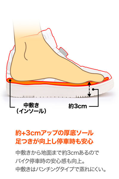 | ●歩きやすさ+ライディングのしやすさを追求。急な雨でも安心なスニーカースタイルの防水ライディングシューズ。着脱が容易なリールシステムとアンクルベルトで、好みのホールド感に調節が可能。くるぶしにはプロテクターを内蔵。足首後ろは歩きやすいアンクルカット。夜間の視認性アップのため、パイピングは反射素材を採用。ソールはフラット形状ながら滑りにくく、インソールはパンチングタイプを採用し、防水仕様による蒸れやすさを低減。甲高幅広が多い日本人に適した2E相当の幅広設計です。 ■仕様 ・カラー:ソリッドホワイト ・サイズ:25.5cm ・素材:アッパー - PU/ナイロン/防水フィルム ソール - 合成ラバー ※アッパーとライニングの間に防水加工を施してあるため、急な雨でも水の浸入を防ぎます。 ※完全防水ではありません。 ※サイズ・色交換は承れません。ご注文前に必ずサイズ・色をご確認下さい。 ※取り寄せ品 |
