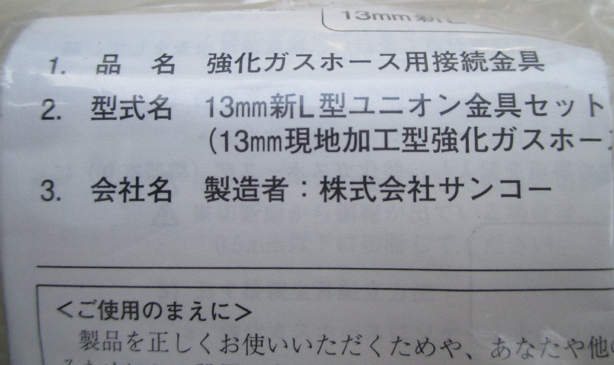 ☆ サンコー 13mm 新L型ユニオン金具セット 現地加工型強化ガスホース用接続金具◆機器(TUねじ)とホースを接続する継手1,991円