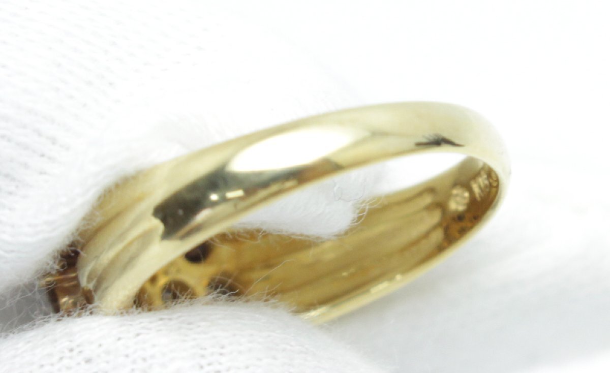 【お問い合わせ番号】250630028 【素材】イエローゴールド(18金) 【宝石】ダイヤモンド 合計1.10ct 【刻印】K18、1.10 【サイズ】実測:10号 【重量】約3.8g 【付属品】本体のみ 【状態】中古Aランク 目立つキズやヨゴレはほとんど見られず、キレイな状態の商品です。 金性(貴金属純度) 金の金性はカラット(24分率)/パーミル(1000分率)の2種類の表記があります。 割金の種類で、イエロー、ピンク、ホワイトゴールド等と色調に種類があります。 プラチナとシルバーの金性はパーミル(1000分率)表記をします。 ・ゴール:K24/9999(純金) K18/750 K14/585 K9/375 ・プラチナ:Pt1000 Pt950 Pt900 Pt850 ・シルバー:SV1000 SV925(スターリングシルバー) ダイヤモンドの品質評価 アメリカ宝石学協会GIAの4Cシステムに準拠しています。 ・Caratキャラット:重量(大きさ)です。1.0ct=0.2gです。 0.2~0.1ct以下の小粒ダイヤモンドを"メレダイヤ"と呼ぶことがあります。 ・Clarityクラリティ:内包物や表面傷の大小多少です。10倍拡大した状態で検査します。 高品質← FL IF VVS1 VVS2 VS1 VS2 I1 SI2 I1 I2 I3 →低品質 ・Colorカラー:多くのダイヤモンドにはイエローやブラウンの色が少し含まれています。 高品質← 無色(DEF) ほぼ無色(GHIJ) わずかに有色(KLM) 有色(underN) →低品質 ・Cutカット:プロポーション(バランス)とポリッシュ(仕上研磨)の良し悪しです。 高品質← Excellent VeryGood Good Fair Poor →低品質 真珠の品質評価 ・カラーに品質の上下はありません、お好みでお選びください。 ・シェープは外形をラウンド(球体)、セミラウンド(ほぼ球体)、セミバロック(やや変形)、バロック(変形)、 またオーバル(楕円)、ドロップ(水滴)、サークル(線入り)等で表しています。 ・光沢性は照り・真珠層巻厚を、A非常に良い、B良い、C普通、D劣る、の4段階で表しています。 ・平滑性はキズ・シワを、A非常に少ない、Bやや少ない、Cやや多い、D多い、の4段階で表しています。 |