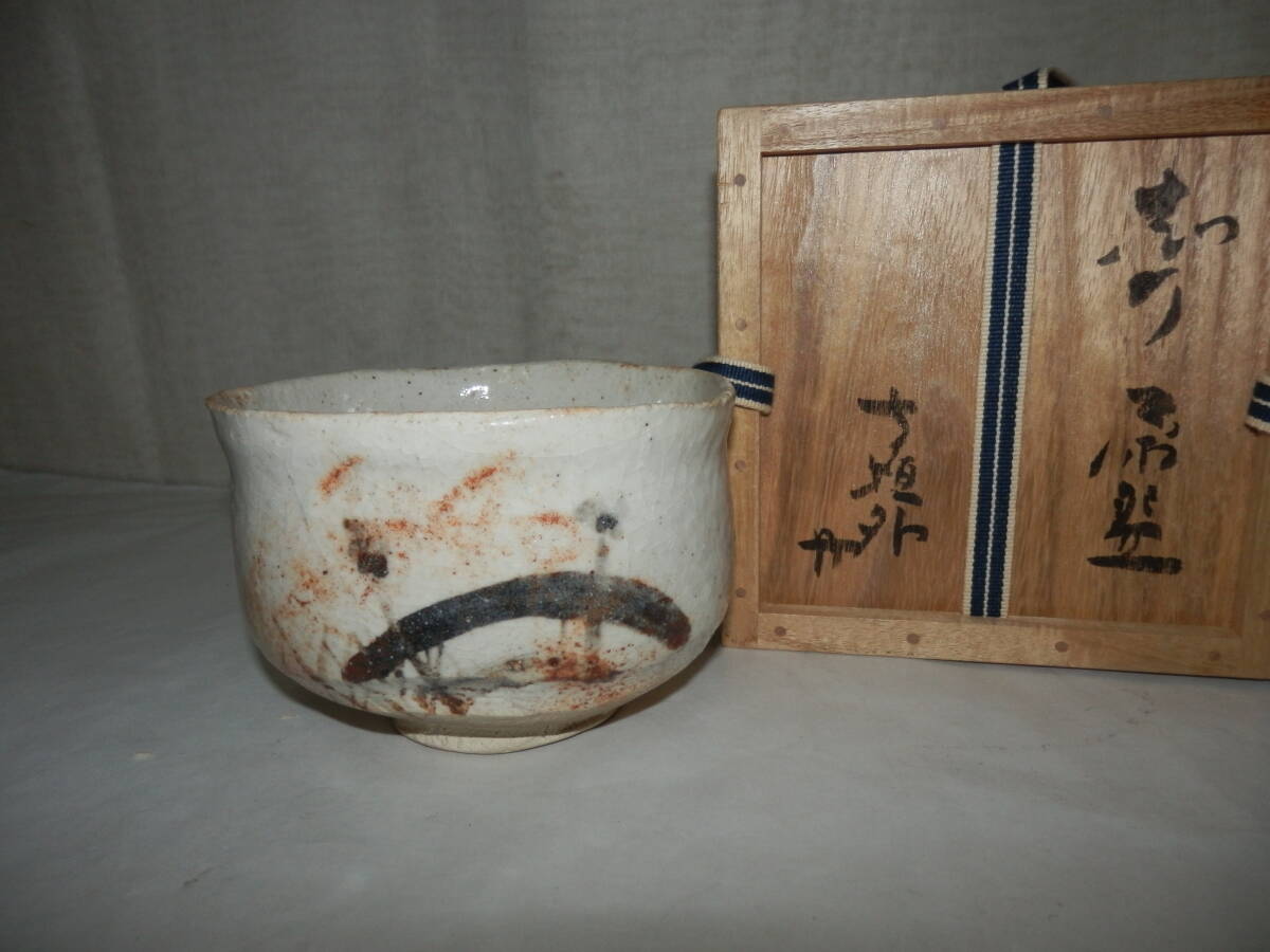 「中古品・茶道具」 信楽焼の寺垣外窯の杉本貞光さんの茶碗です。志野です。 最大径約12.7cm 高さ約8.7cm 高台の横に彫銘有。桐共箱「ヤケ、シミ等有」。 どうぞ宜しく。