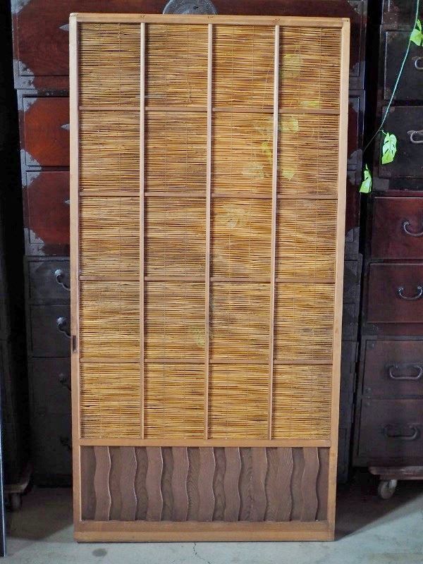 | 古民家の夏戸・簀戸 腰板に無双付 在庫4枚 昭和中期 送料割高のため店頭引き取り推奨 古録展 送料別 Mサイズ 中古 品番K1333 | |