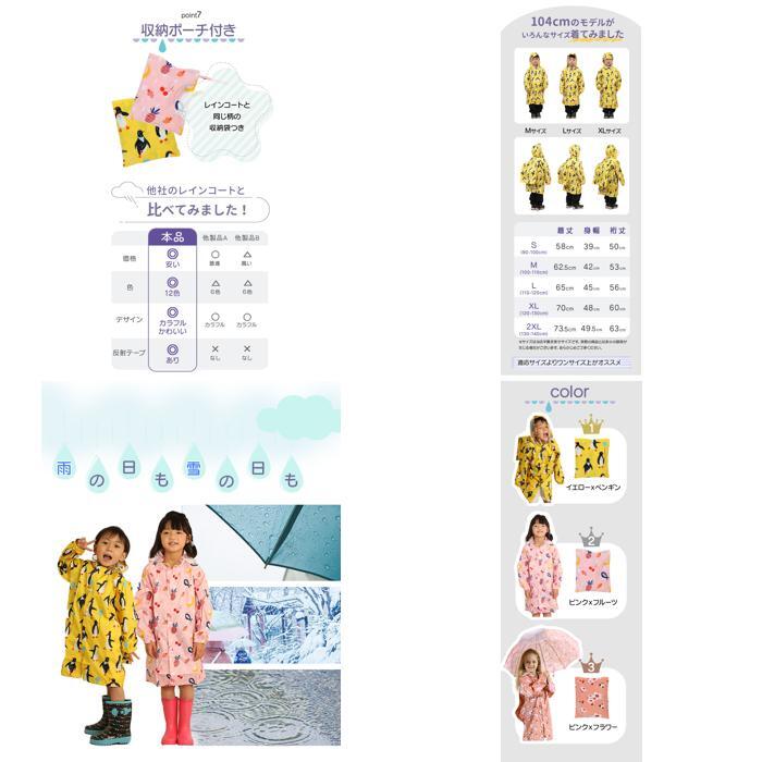 | 商品説明 | ・・雨の日もhappyに!優しい色合いとプリントが可愛い、キッズレインコート♪ ・フードの広い範囲がクリア素材で作られているから、視界をさえぎらない♪ ・背面には反射テープつき。薄暗い雨の日でも、車のライトに反射して光るので安心。 ・後ろ身頃に充分なタックを入れた、ゆったりとした作り。リュックやランドセルを背負ったまま着用できて、とても便利♪ ・袖口は雨の侵入を防ぐゴムテープ入り。多少大き目のサイズを購入しても袖丈の調節が可能♪ ・お子様でも脱ぎ着がしやすい、スナップボタン。 ・お気に入りのカラーを選んで、雨の日も楽しくお出かけ♪ |