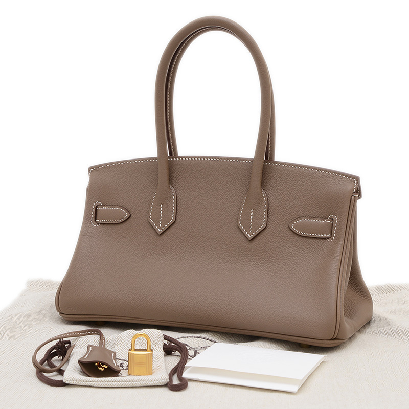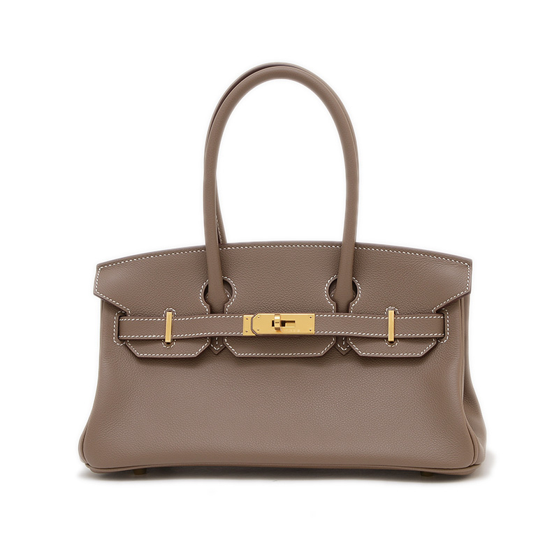 | 商品特徴 | バーキンのデザインコードをそのままに、ハンドルを長くして肩掛けできるようにしたバッグです。しなやかで人気の高いトリヨンクレマンス素材の落ち着いたエトゥープカラーに、上品なゴールド金具が組み合わされています。日常使いに最適なサイズ感と、バーキン特有のエレガンスと存在感を兼ね備えた、機能的で洗練された逸品です。 |