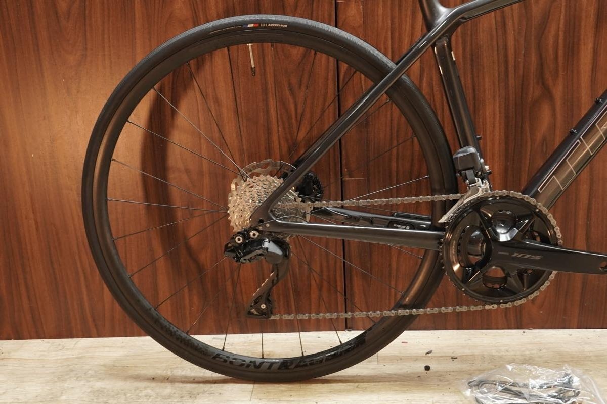 年式:2023 フレーム:カーボン フォーク:カーボン メインコンポ:SHIMANO 105 R7170 Di2 2X12S クランク:SHIMANO 105 FC R7100 170mm 50T:34T ホイール:BONTRAGER PARADIGM COMP タイヤ:700 X 28C スプロケット:12S 11T:34T ハンドル幅:380mm ステム長:80mm サイズ:50 トップチューブ長(C-C):521mm (※ホリゾンタル換算値) BBセンター~サドルTOP(C-T):610mm~670mm 適応身長:160cm~170cm程度 実測重量:8.65kg ※掲載画像状態 |