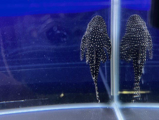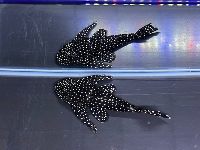 バットマンアンジェリカスプレコは黒色の平たい体に白いドット模様、横に伸びた胸びれが特徴のとても美しいプレコです。
