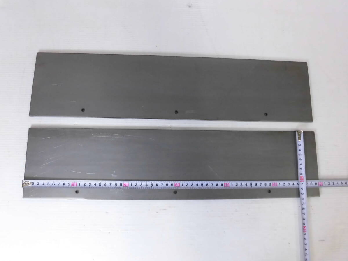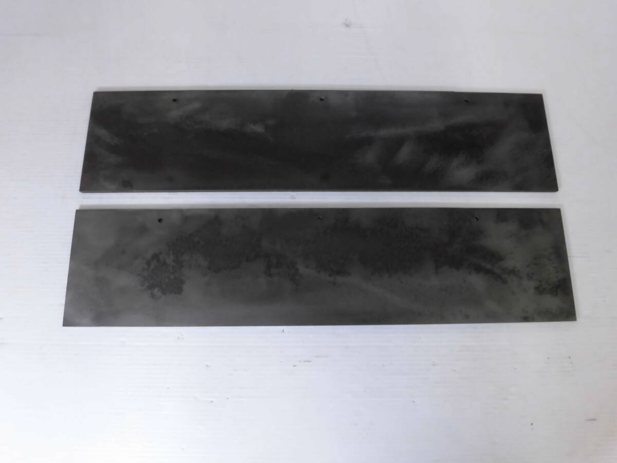 | 商品説明 | 材質 : スチール板(鉄板) サンセン 板厚 : 6mm サイズ : 約140mm x 約597mm (3ヶ所孔があいています) 数量 : 2枚 重量 : 約7.6㌔(2枚) 実際の商品は、表示寸法より若干の誤差があります。 製品サイズ : ±2mm程度 サビが有ります。 | |