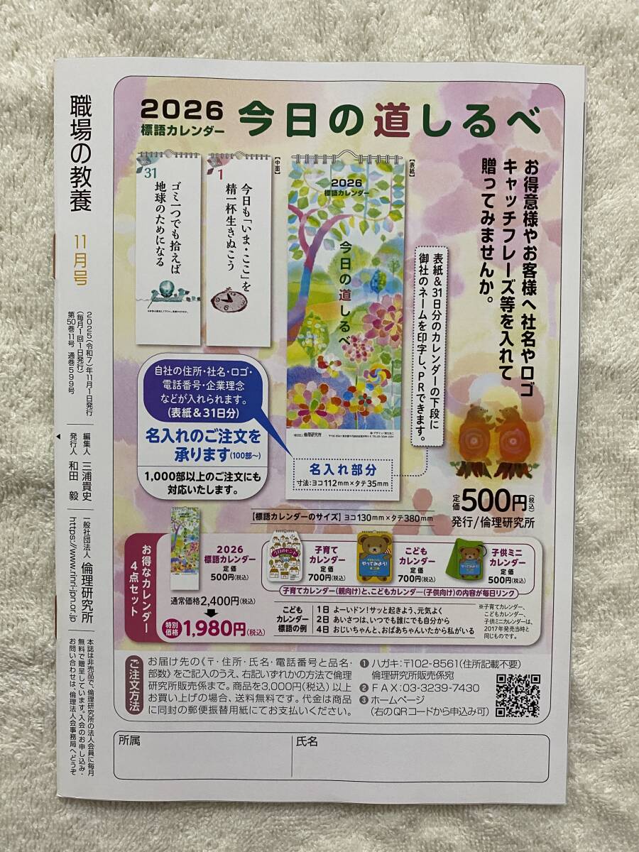 【2025年】職場の教養 11月号 未使用【非売品】 | |||