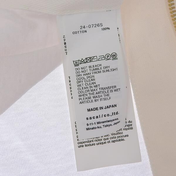 | 商品タイトル | サカイ SACAI ×カーハート コットン サイドZIP ポケットロンT カットソー メンズ ホワイト size1 24SS [Y03217] |
