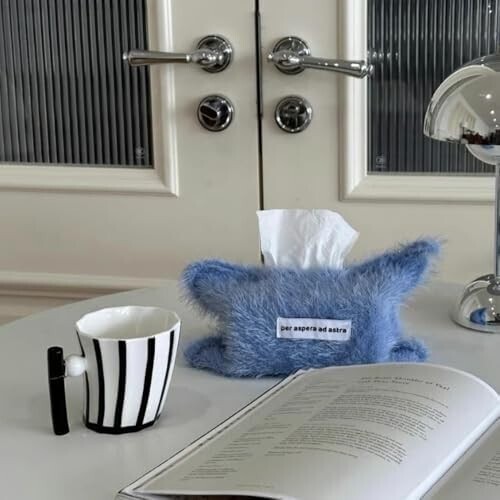 ブルー ティッシュケース シャギーニット ティッシュホルダー フェザーヤーン (ブルー)
