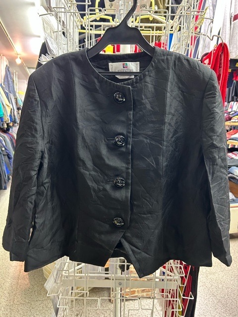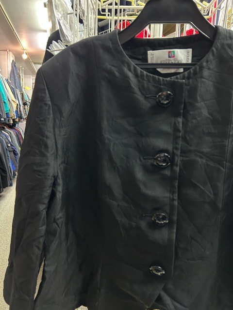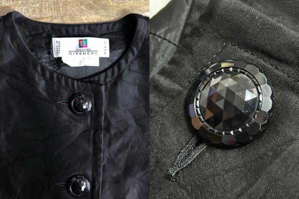 | フランス製 ジバンシィ ヴィンテージ ノーカラー ジャケット 飾りボタン 七分袖 黒 44 | |||||||||||