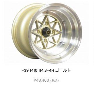 | 商品内容 | ■付属品:センターキャップ、エアバルブ ■旧車などの足元が引き立ちます! マッチングやツライチ具合などのご質問には回答できません。 サイズをご確認の上、ご購入下さい。 サイズ 14インチ 10J オフセット-39 PCD114.3-4H ハブ70.1φ センターキャップ&バルブ付属 |