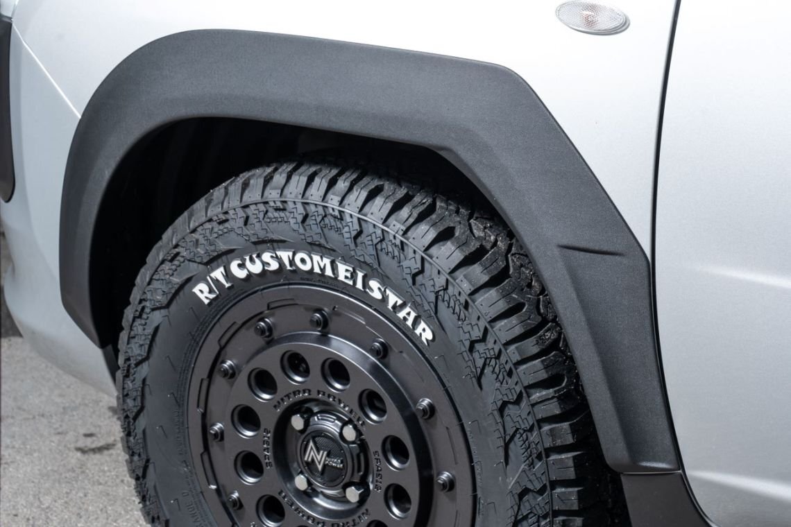 フェンダーエクステンションは国土交通省が定める指定部品ですが、車検に関しては各陸運事務局の見解に違いがあるため、車検を担当する各陸運事務局にお問い合わせください。 素材 ABS樹脂 取付 付属両面テープで貼付け タイプ シボ仕上げブラック シボ仕上げとは軽トラックの純正などに採用される樹脂バンパーのような細かい凹凸のある仕上げの商品です。 指定部品とは国土交通省が使用過程における自動車について、軽微な変更となる自動車部品の取付について一定の寸法及び取付方法であれば諸手続きが不要と指定された部品のことで弊社フェンダーエクステンションは指定部品に該当しています。 詳細はメーカーHP「シルクロード」で検索! |