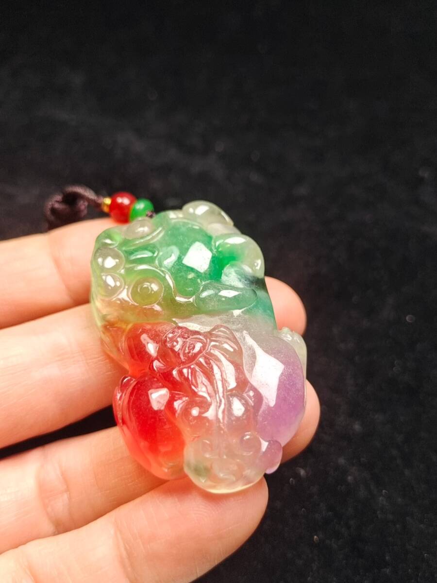 | 【古寶奇蔵】翡翠製・細密彫・冰種・三色・貔貅・ペンダント・根付・裝身具・古董品・中国古玩・時代物・希少珍品・中国時代美術110360 |