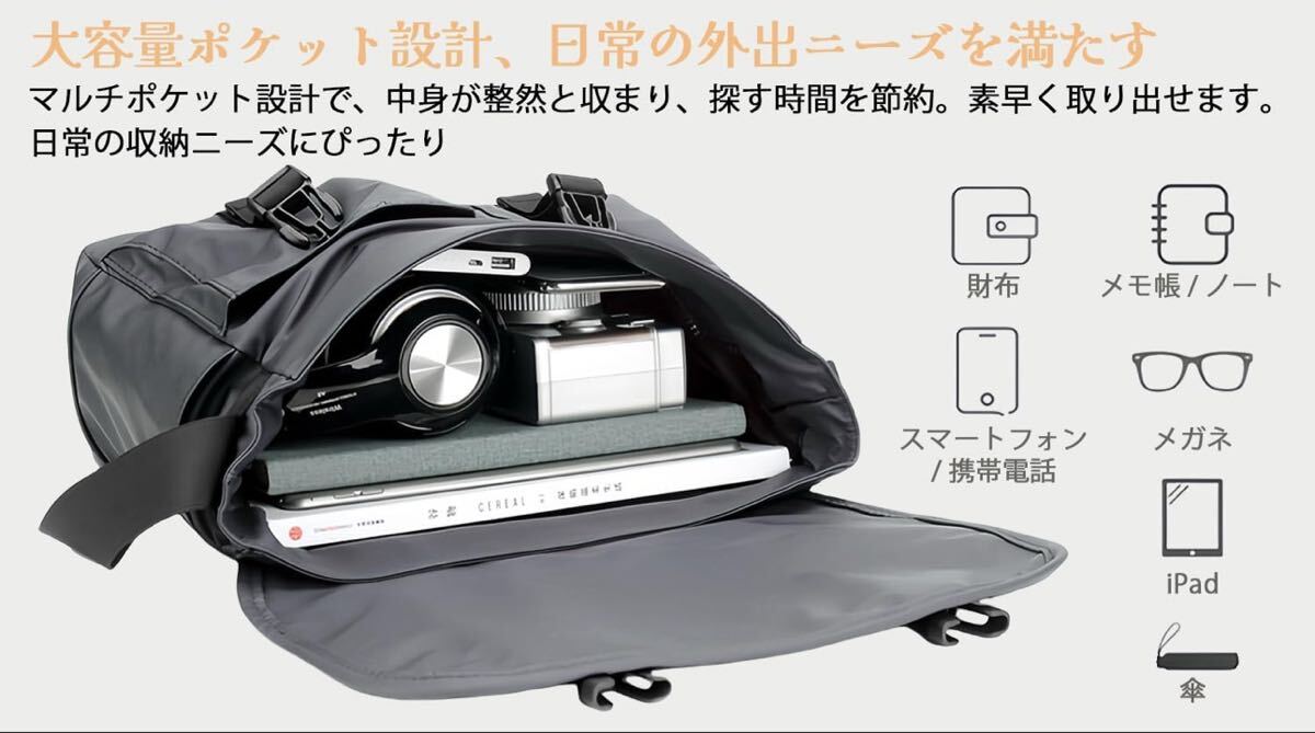 ショルダーバッグ クロスボディバッグ メンズショルダーバッグ ファッション 人気が高い サイドバッグは斜め掛けも可能 大容量、軽量、防水、多機能、複数ポケット、IPAD13収納可能| 出价者 | 信用 | 价格 | 时间 |