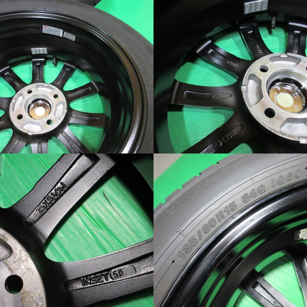 ◆商品紹介◆ 【4本セット】です。 ・適合車種(【参考程度】です。マッチングについては必ず入札者様自身の責任で御調べください。) 前装着車種:ホンダ フィット (年式グレード不明) (トヨタ) アクア カローラアクシオ カローラフィールダー シエンタ ベルタ ヤリス ヴィッツ (ホンダ) インサイト グレイス シャトル フィット フィットシャトル (スズキ) スイフト スプラッシュ 【ホイール】