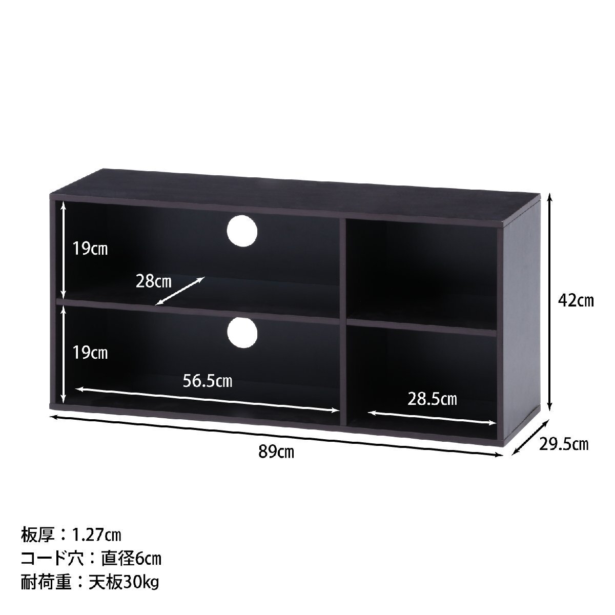 | サイズ | 全体:幅890 × 奥行295 × 高さ420mm 耐荷重(天板):30kg 板厚:12mm 適用TVサイズ:32V型まで コード穴直径:60mm ※詳細はサイズ画像をご確認ください。 |