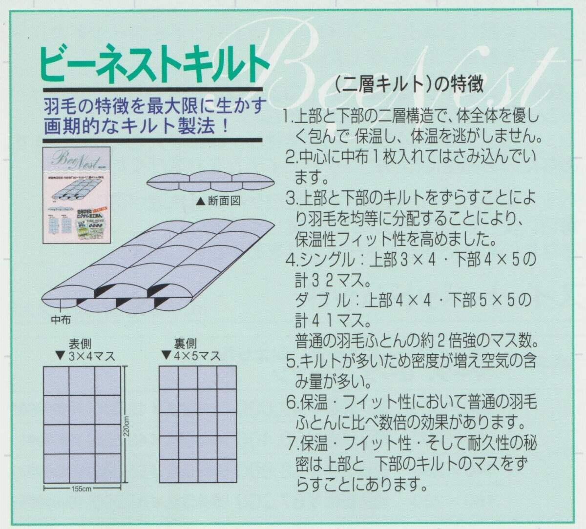縫製 ビーネストツインキルト | ツインキルトの中でもより暖かい縫製 |