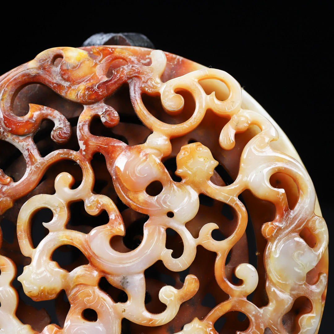 ◆御泓軒◆『漢朝時代 高古玉 和田玉彫 魑龍紋玉璧』極細工・古賞物・中国古玩・中国古美術