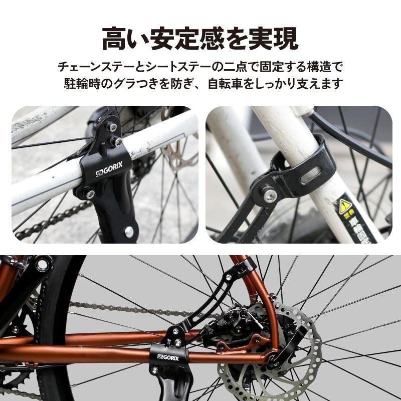 GORIX 自転車用キックスタンド GX-ST113 「汎用性高いキックスタンドが登場!」 このスタンドは、700cや24-27インチといった幅広いサイズの自転車に対応し、柔軟に調整できるため、とても汎用性があります。 ロードバイクやクロスバイク、MTBなど初期スタンドがない自転車にぴったりです。 チェーンステーとシートステーの2点でしっかり固定するため、抜群の安定感を実現。 さらに、初心者でも簡単に取り付け可能な日本語説明書付きなので安心です。 耐久性と軽量性を兼ね備えたアルミ合金製で、長く快適に使用できます。 脚裏には滑り止め加工を施しており、あらゆる地面で安定感も向上。 シンプルな設計で使いやすく、毎日のサイクリングがより快適になります! 取り付けるだけで、愛車の利便性がグンとアップ! 特徴 ●700c、24-27インチほとんどの自転車に装着可能 ●柔軟に調整できるので対応範囲が広い ●チェーンステーとシートステーの2点固定で安定感あり ●初心者でも簡単に取付けできる(日本語説明書入り) ●軽量で耐久性に優れたアルミ合金採用 ●地面と接する脚裏には滑り止め加工を。 【700c、24-27インチに対応】 ロードバイク、クロスバイク、MTBなど、さまざまなタイプの自転車に幅広く対応。 初期スタンドが付いていない自転車に最適です。 【長さ調整と角度調整が可能】 使用シーンや自転車に合わせて、スタンドの長さを調整可能。 また角度調整も可能で様々な自転車にフィット。 【チェーンステーとシートステーの2点固定】 2か所でしっかり固定する構造により、高い安定感を実現。 駐輪時のグラつきを防ぎ、自転車をしっかり支えます。 【簡単に取付けできる】 日本語の説明書付きで、初心者でもスムーズに取り付け可能。工具があれば短時間で取り付け完了です。 【高強度・軽量アルミニウム合金製】 耐久性に優れたアルミ素材を採用し、軽さと頑丈さを両立。 自転車通勤や自転車通学などの日常使いから街乗り、ツーリングまで安心してお使いいただけます。 【滑り止め加工で安定性あり】 地面と接する部分には滑り止め加工を施し、滑りやすい場所でも安定感を実現。 【商品内容】キックスタンド、日本語説明書 【素材】アルミ合金本体 、ゴムフットキャップ 【適応サイズ】22-27インチ 【重量】370g 【固定位置】チェーンステー 【サイズ】全長35cm-39.5cm 【本製品についても注意事項】 ・本製品に取り付け用の工具は付属しておりません。 ・ネジに、錆が見られる場合がございます。これは製造工程や保管環境の特性によるものであり、製品の機能や安全性には影響ありません。 ご確認のうえ、適合する自転車への取り付けをお願いいたします。 商品は入荷によりキズがある場合があります。 傷や細かい汚れが気になる方や神経質な方は入札をお控え下さい。 入荷時期により予告無く一部仕様変更する場合が有ります。 カラーはディスプレイ種類環境等により実物と異なって見える場合がございます。 |