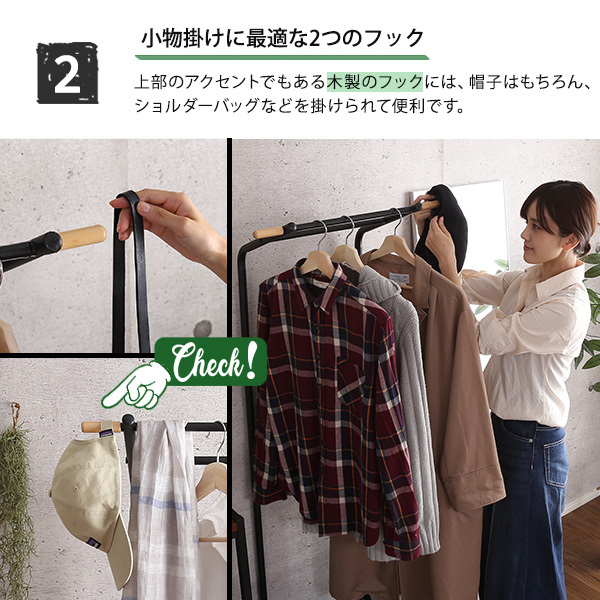 【ポイント】 スタイリッシュなハンガーラック。ヴィンテージ感のあるスチールポールです。 オシャレな木目とスチールがお部屋にインパクトを与えます。 場所を取らないスリムタイプなので、玄関、リビング、寝室においてもOK! 持ち運びもラクラクです♪ |
