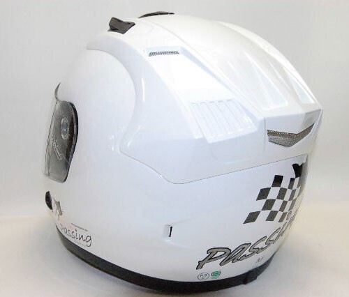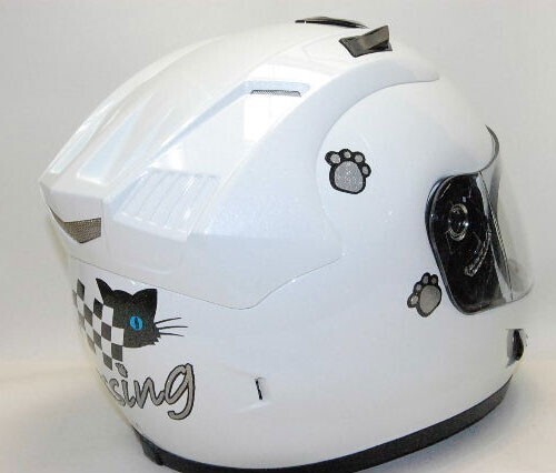 黒猫キャラクターブルーアイちゃんのパッシング・フルフェイスヘルメットです。 ■サイズは XLサイズ60~62㎝ ・Mサイズ57~58㎝ ・Lサイズ59~60㎝がございますのでサイズ変更も可能です。 【調整スポンジもお付けいたします。】 当店のオリジナルステッカーもプレゼント! ご希望でPassingの文字の部分をご希望のネームに変更出来ます。 【落札後に8文字までで、ご連絡をお願いいたします。】 キラキラのメタリック素材・屋外対応のステッカーで猫ちゃんとにゃんこ手形を上から剥がれにくい様にクリアーでコーティングもしてあります。 ■あご紐はワンタッチ式 ■内装は、取り外し可能で洗えます。 ■通気性を考えたベンチレーション機能付き ■SG規格適合品(全排気量対応) シールドはUVカットの透明が付いております。 ★別売り2800円プラスで下記のシールドのお色も追加できますので、落札後にご連絡くださいませ。 【かんたん決算の時に送料の方にプラスで追加可能です。】 ①ライトスモークシールド ③クリアーミラーシルバーシールド ④スモークシールド ⑤ミラーレインボーシールド ⑥ミラーシルバーシールド 【④~⑥は濃いめのお色となりますので夜間には見えにくいです。】