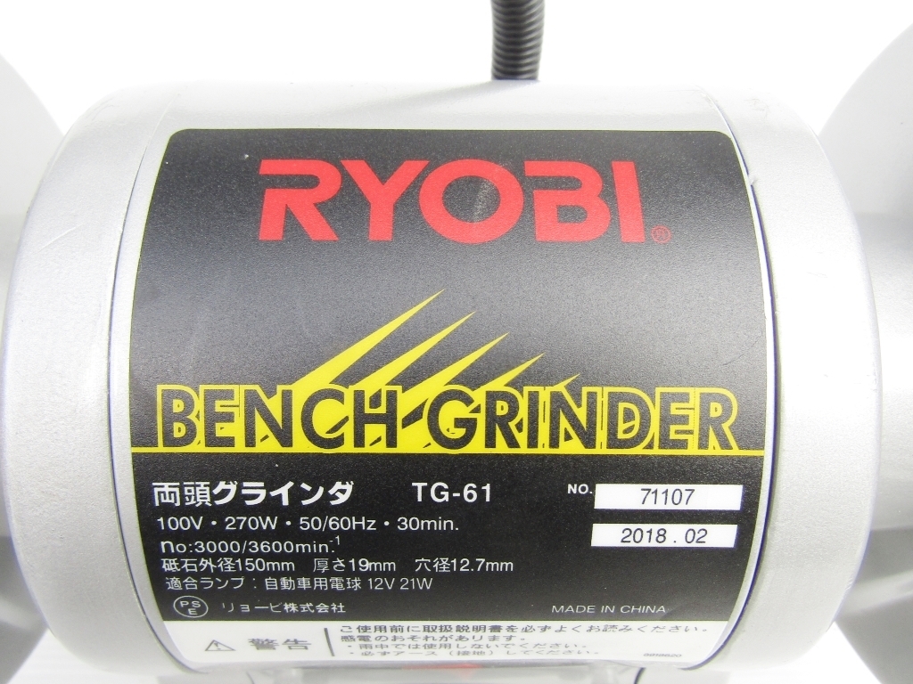 | 超美品 京セラ RYOBI ベンチグラインダー TG-61 両頭グラインダー 研磨 バリ取り サンダー 手元が明るいフレキシブルライト 刃物 鉋 鑿 スクレーパー チゼル 彫刻刀 | |
