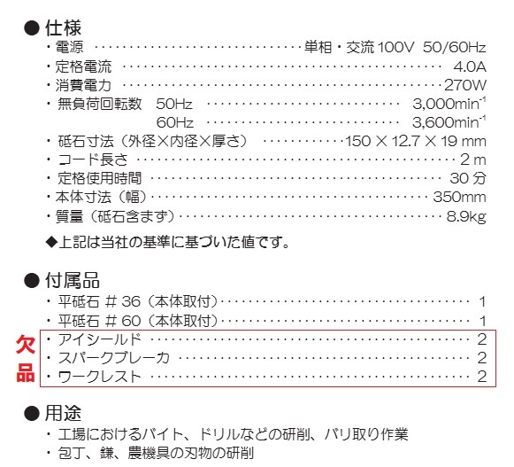 | 商品説明 | ガラケーやモバイルモードでは 追加画像(40枚)を見る事が出来ません パソコンもしくは スマートフォン デスクトップモード パソコンモード アプリにて ご覧ください 信頼と実績 京セラ RYOBI 超美品 京セラ RYOBI ベンチグラインダー TG-61(定価¥18150-) 両頭グラインダー 研磨 バリ取り サンダー 手元が明るいフレキシブルライト 使用1回程度の超美品♪ 砥石に少々よごれは見られますが 砥石のエッジも鋭く ほぼほぼ未使用状態の砥石です♪ 研磨 バリ取り フリーハンドでご利用頂ける方 お安くどうぞよろしくお願い致します♪ クリック→参考資料 取扱説明書←クリック 現品限りで 高価で超希少なモノかと存じますが 売り切りますのでどうぞよろしくお願い致します 即納 即戦力 即日発送 翌日着♪ 送料格安 1000円~ (北海道は別料金2000) (青森・山形・岩手・福島・宮城は別料金1500円) (沖縄県は別料金2500円) (船で渡る地域/陸送出来ない地域は特別料金) (北海道や沖縄県の離島地域は特別料金) 配布中の割引クーポン取得後 (ゴールドクーポン・5のつく日・ゾロ目・ズバトク) 割引価格にて 超お得に お支払いください♪ 即日発送致しますのでご安心してご入札ください 見た目を気にされる方や神経質な方は絶対ご遠慮ください ![]() ![]() |