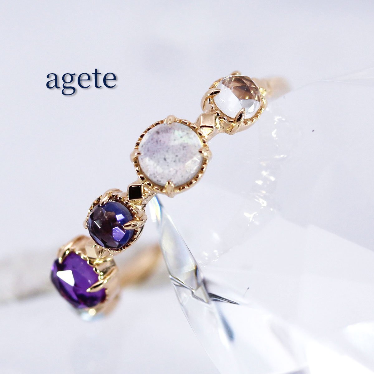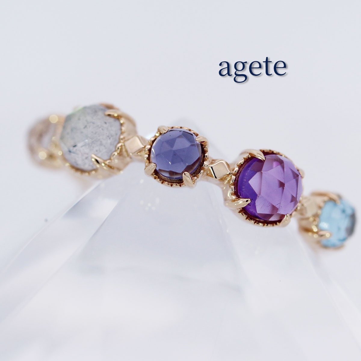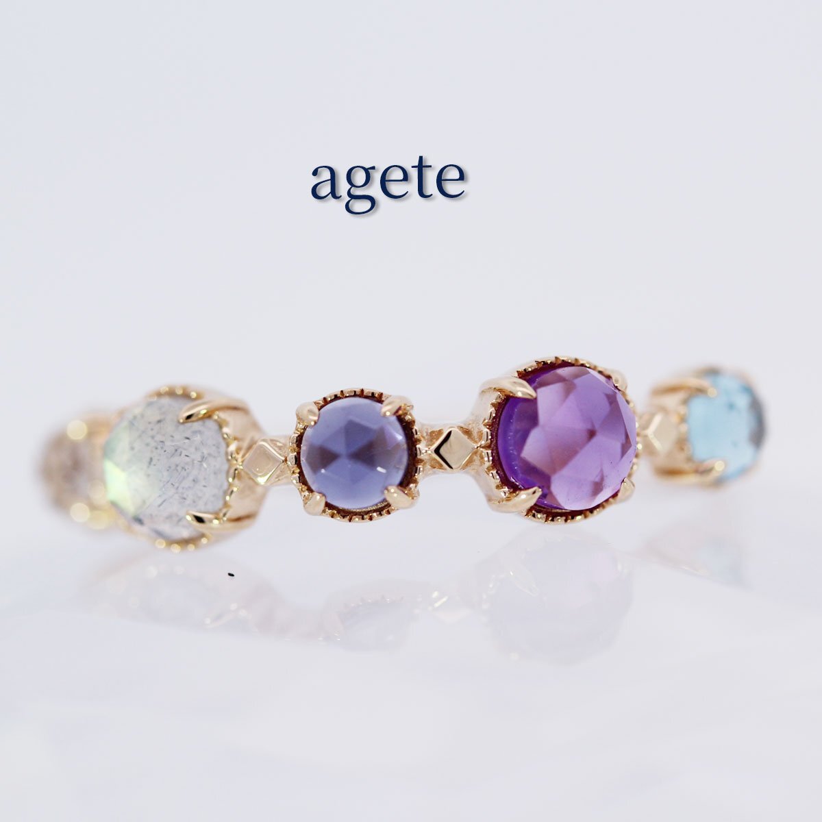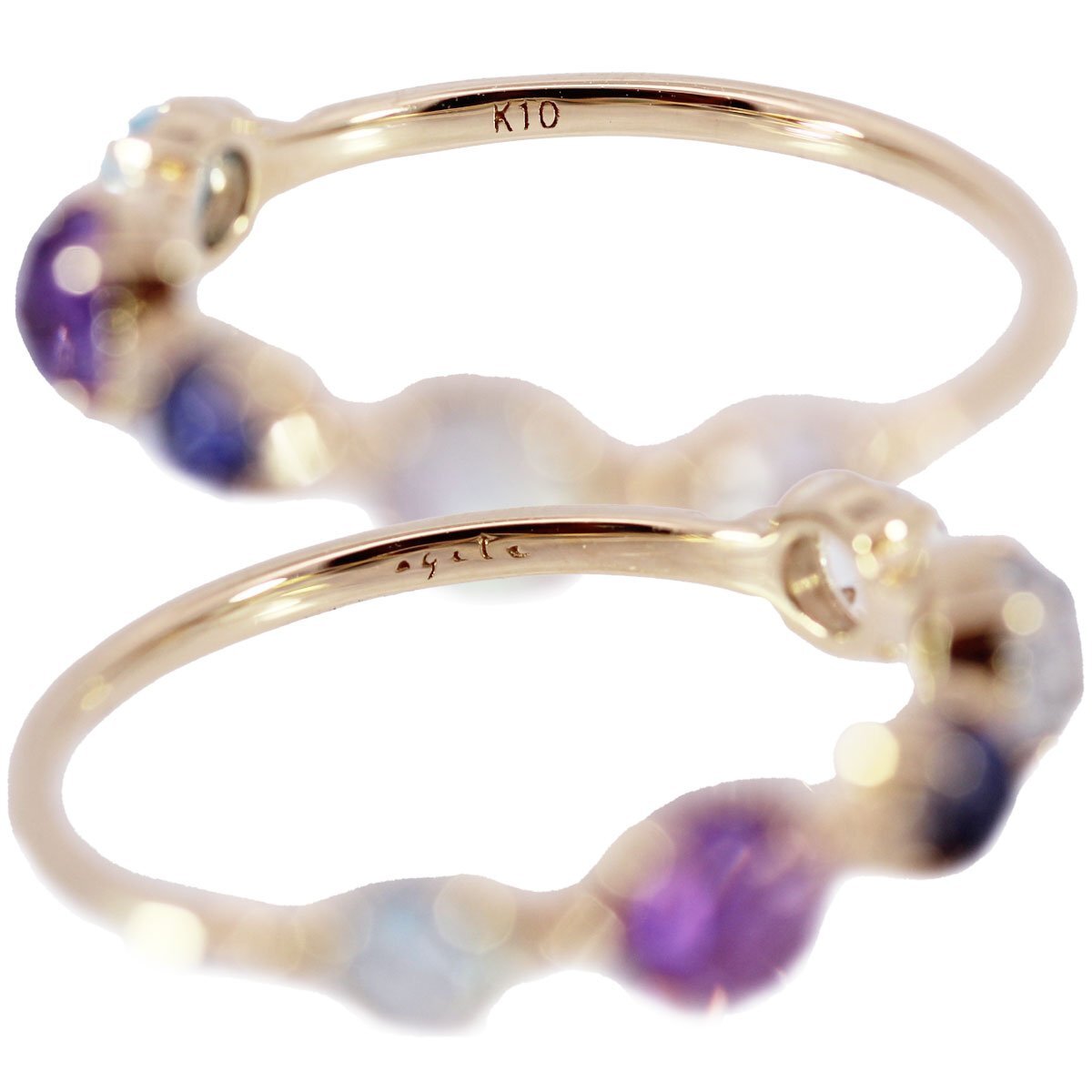 素 材 :K10PG 重 量 :約1.3g サイズ :約11号 石 名 : アイオライト/ラブラドライト/アメジスト/ホワイトラブラド 他 石目不明 説 明 :ageteの存在感のあるカラーストーンが魅力的なリングです。 1本でもボリューム感がありナチュラルカラーのネイルでも指元を華やかに演出してくれます。 アガットオリジナルでカットしたローズカットを贅沢に使用し、大小の石を交互に配置、1本で着けても重ね着けをしても動きのあるデザインにしています。 アイオライトやラブラドライトなど、アガットでも定番の石を使いながらも、アメジストやホワイトラブラドを組み合わせることでゆらめきのある輝きが集まり、幻想的な雰囲気を生み出しています。 全体的に優しい色味ですが、ローズカットがふっくらと高さのあるカットになっているので、存在感のある仕上がりになっています。 重ね着けをする時には、繊細なリングの間に挟んだり、1番下に持ってきて細身のリングをその上にいくつか重ねて存在感を楽しむコーディネートがおすすめです。 ※公式HPより引用 普段使いから、パーティーなど幅広くご使用いただけます。 貴方の指先を素敵に輝かせてくれるでしょう。 ※金性について:当社X線にて確認済みです。 ◆セール期間等についてはインスタで先行配信しております。◆ 【金のみせ】で検索していただくと「lojadeouro-金の店-」が当方になります。 ※クリーニングはしておりますが、中古品につき多少の傷汚れございます。ご了承くださいませ。 |