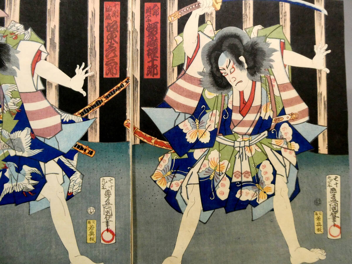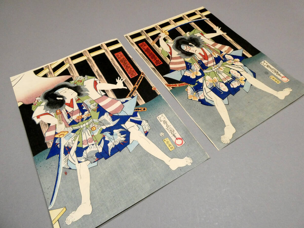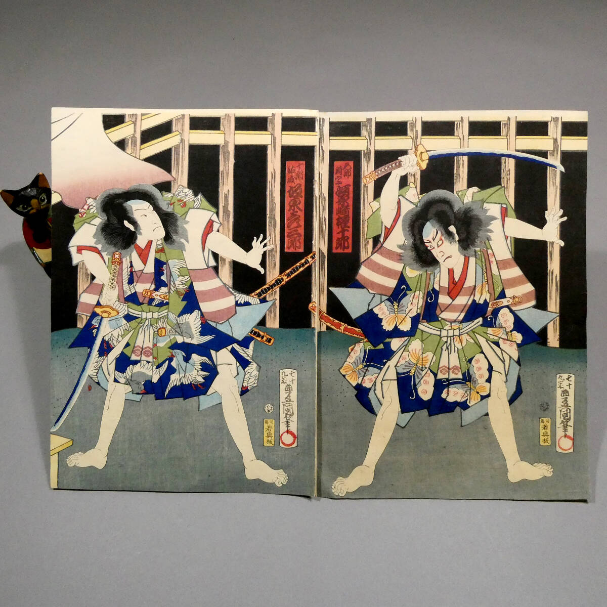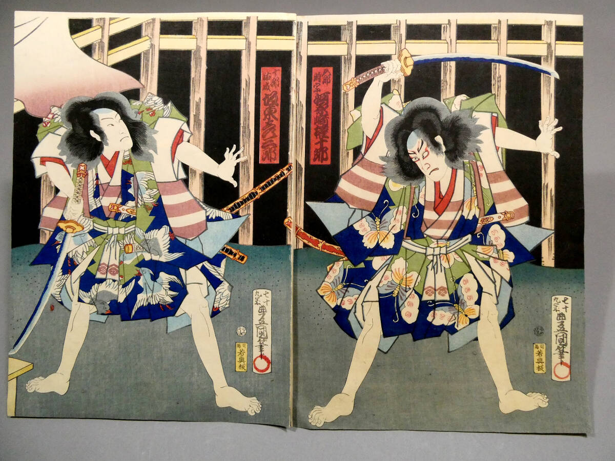 ■ 歌川国貞 曽我兄弟 2枚続 江戸時代 木版浮世絵 役者絵 「五郎時宗 河原崎権十郎」「十郎祐成 坂東彦三郎」 ■