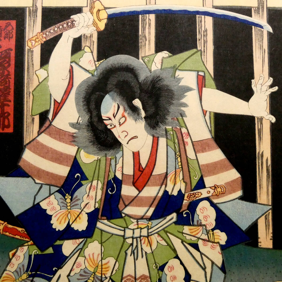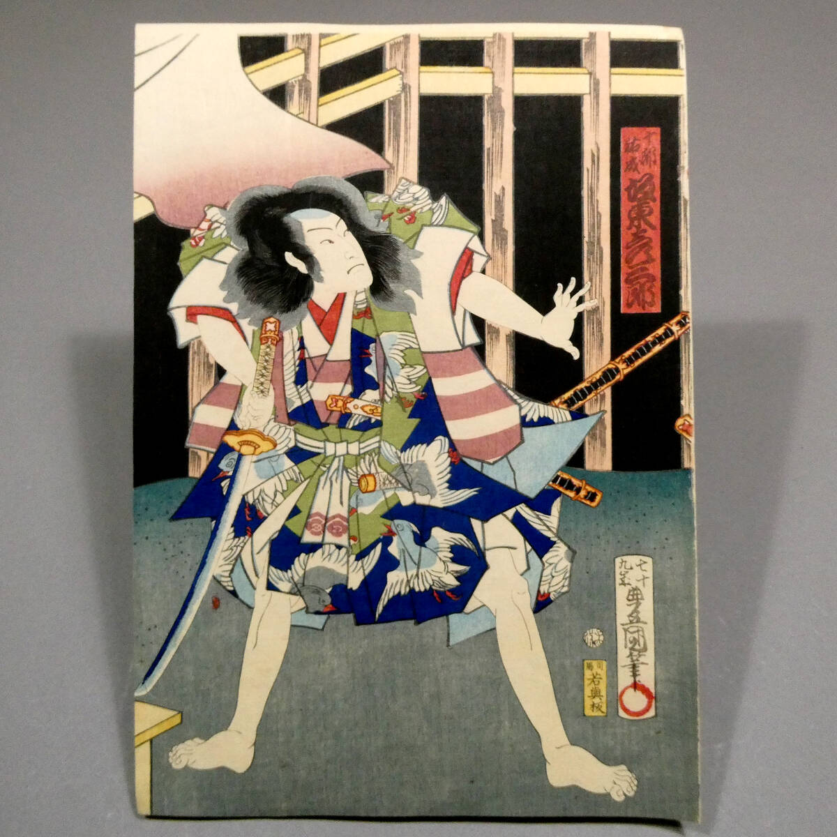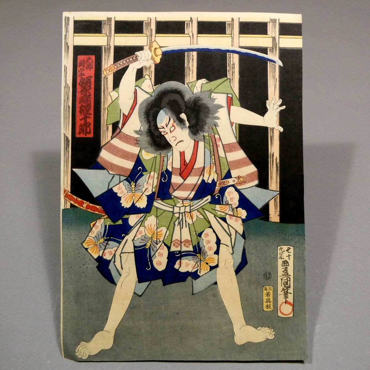 ■ 歌川国貞 曽我兄弟 2枚続 江戸時代 木版浮世絵 役者絵 「五郎時宗 河原崎権十郎」「十郎祐成 坂東彦三郎」 ■