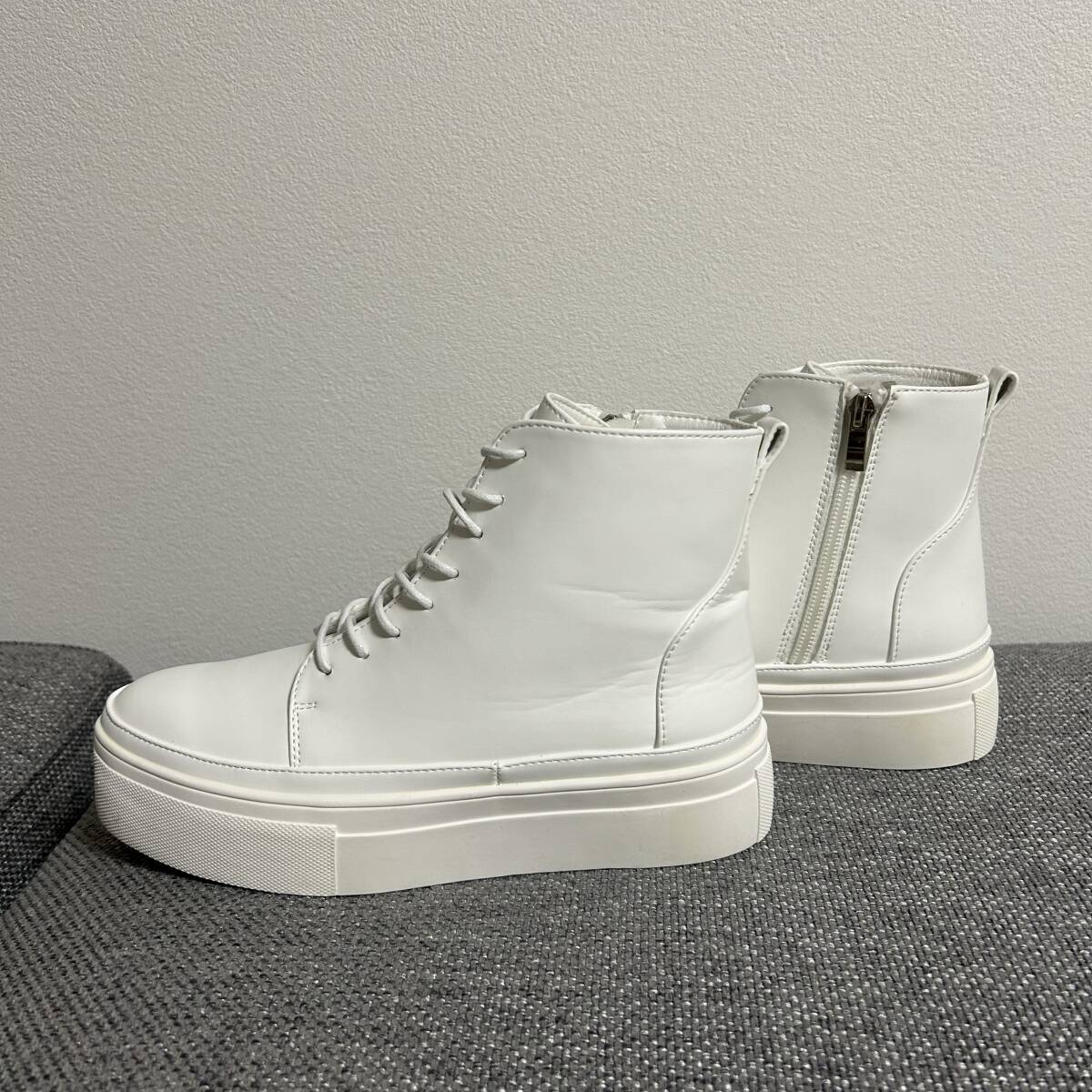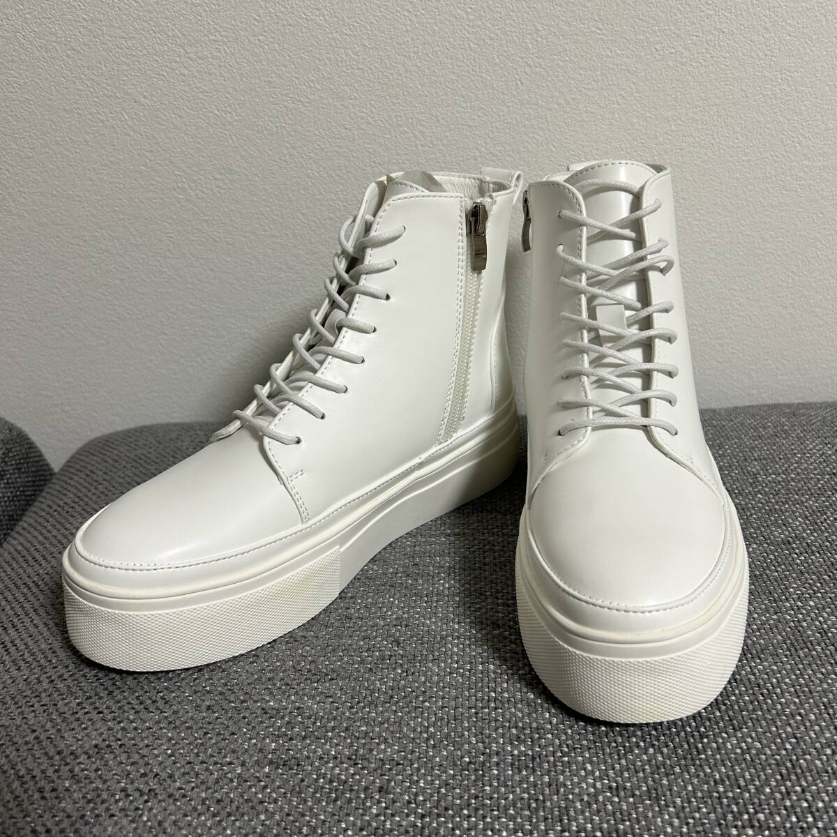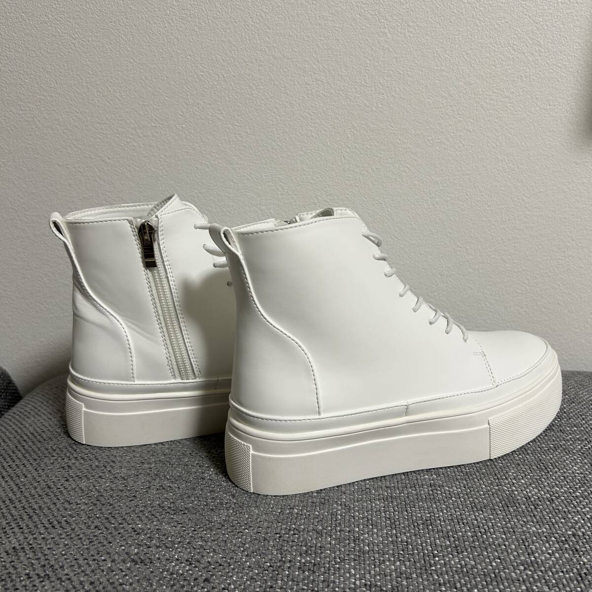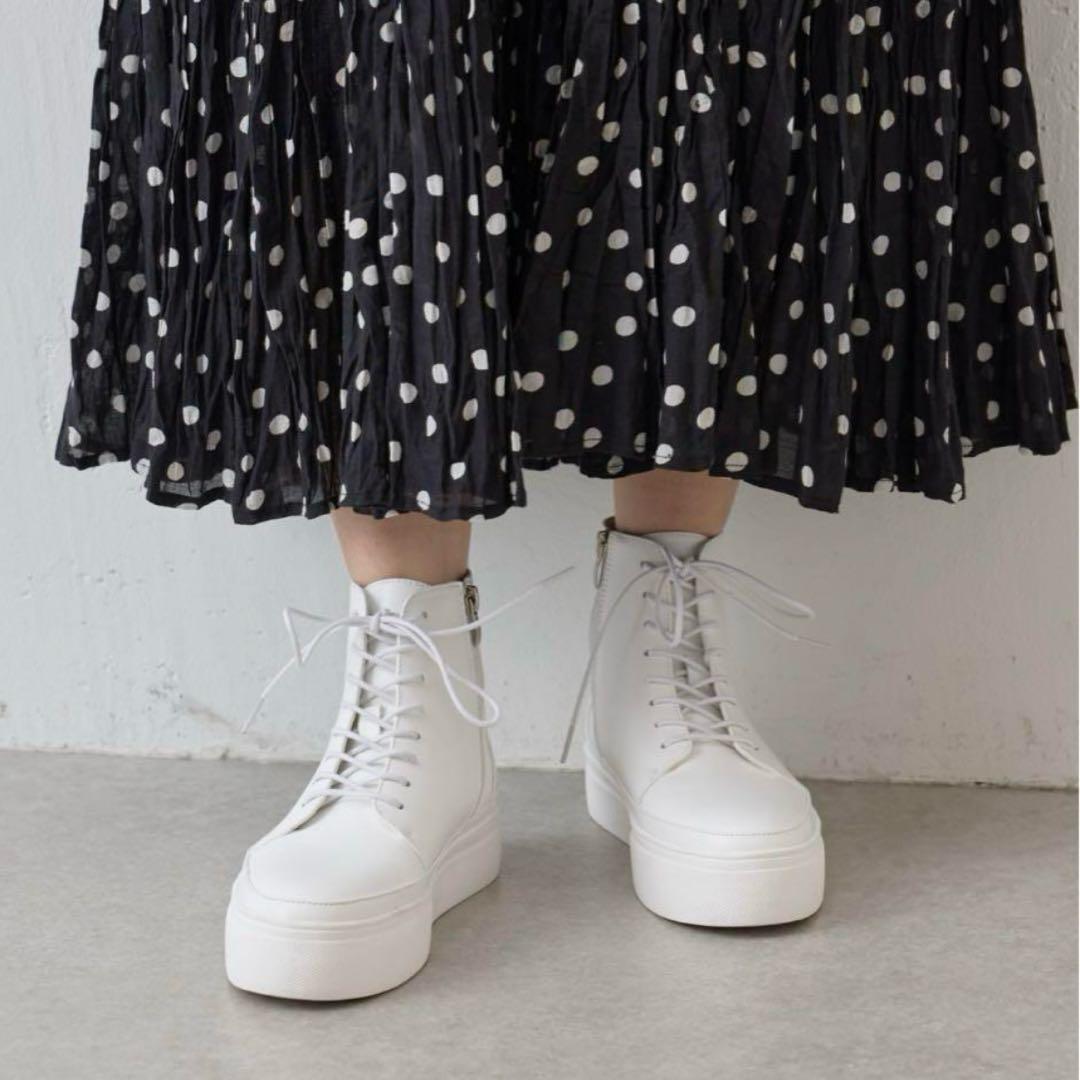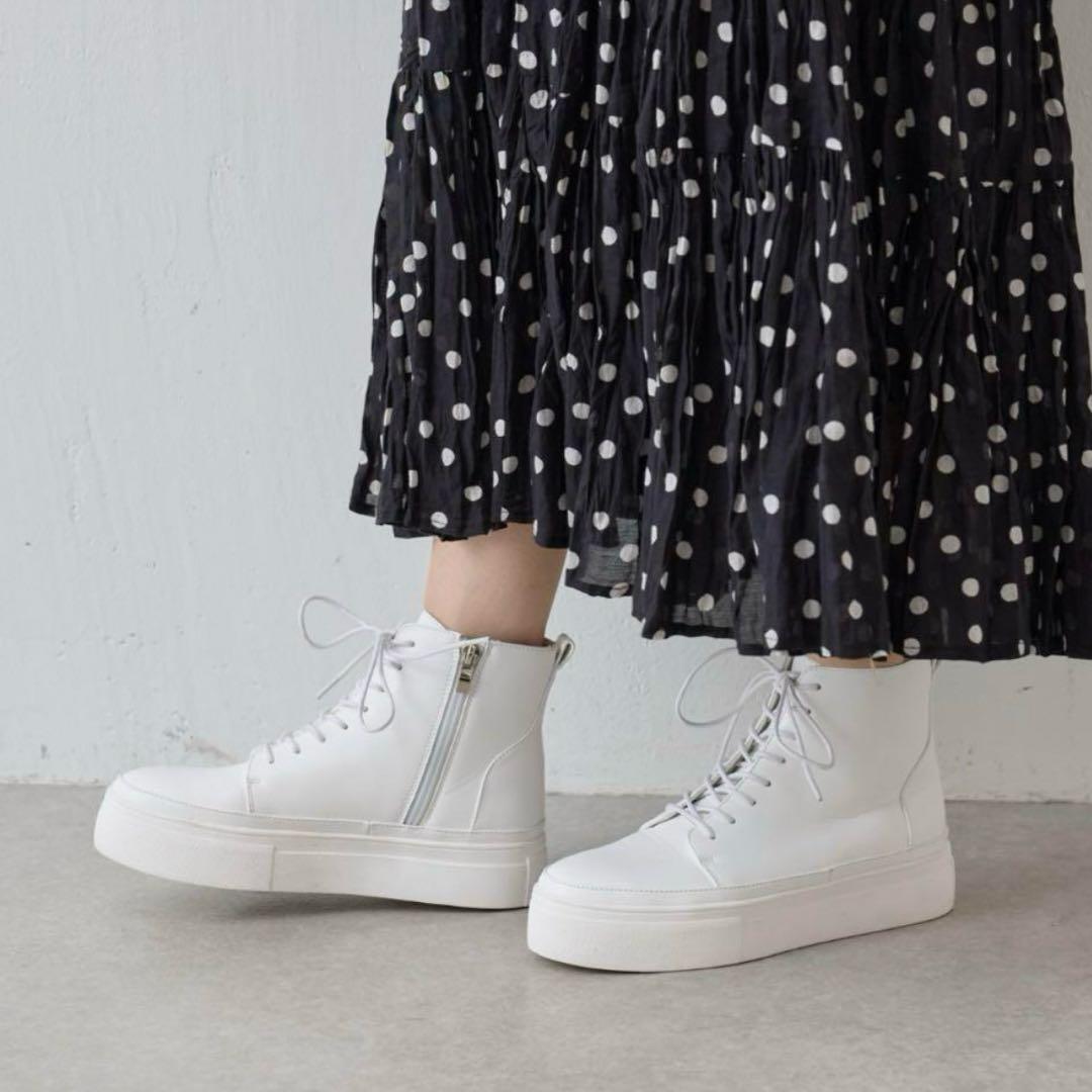 | beardsley ビアズリー Collection .。.:*:.。..。.:*:.。..。.:*:.。. 2024年購入 さりげない厚みのソールが素敵な大人可愛いハイカットスニーカーです。 レースアップしていますが、サイドにファスナーがついているので着脱に便利 レザーブーツ感覚で履いて頂けるハイカットのスニーカー。 様々なコーディネートで活躍してくれる一足です。 .。.:*:.。..。.:*:.。..。.:*:.。. ■素 材:レザー ■カラー:ホワイト ■サイズ:24cm(23~25センチ)レースアップライトシューズ ■状 態:新品 左足を試してみましたがきつくてシワができました。試着のみ 19,800円(税込) | |||