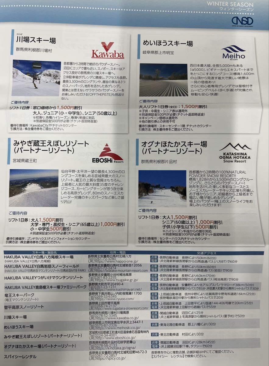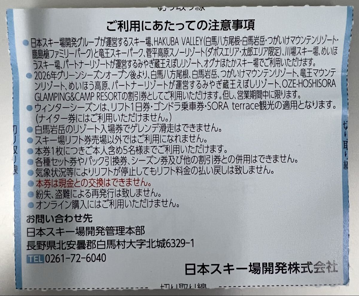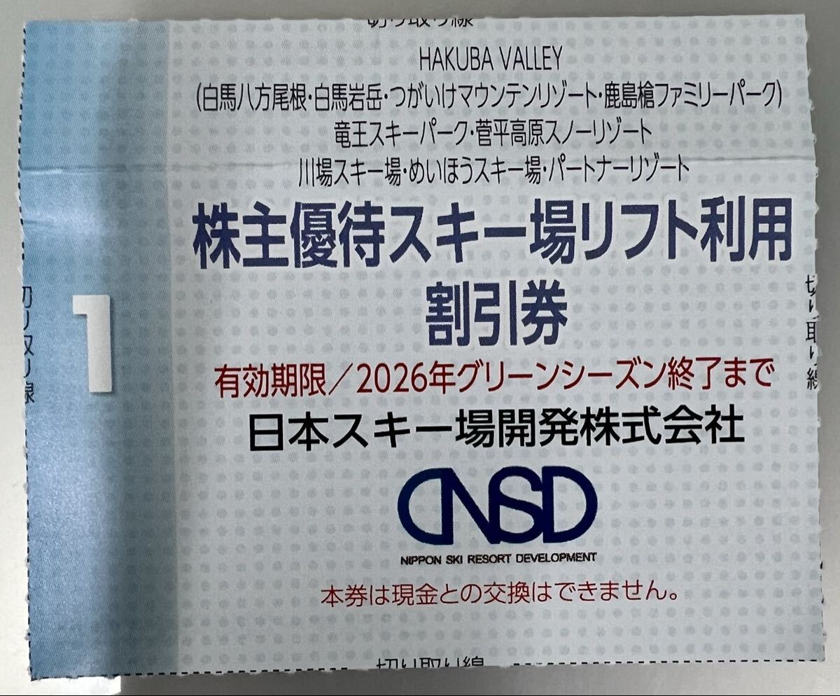 日本スキー場開発株主優待券 スキー場リフト利用割引券1枚になります。