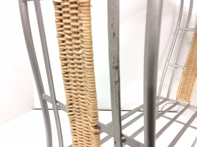 | 商品説明 おしゃれなデザインの2段スチールラックです。 玄関先に鉢植えを置いたりリビングの小物置きなど用途は色々使えます。 詳細 ●サイズ:たて19cm よこ55cm 高さ64cm ●仕 様:スチール製 ●ランク:Cランク ●コンディション:所々にキズ、サビ、汚れ多少ありますが、まだまだお使いいただけます |