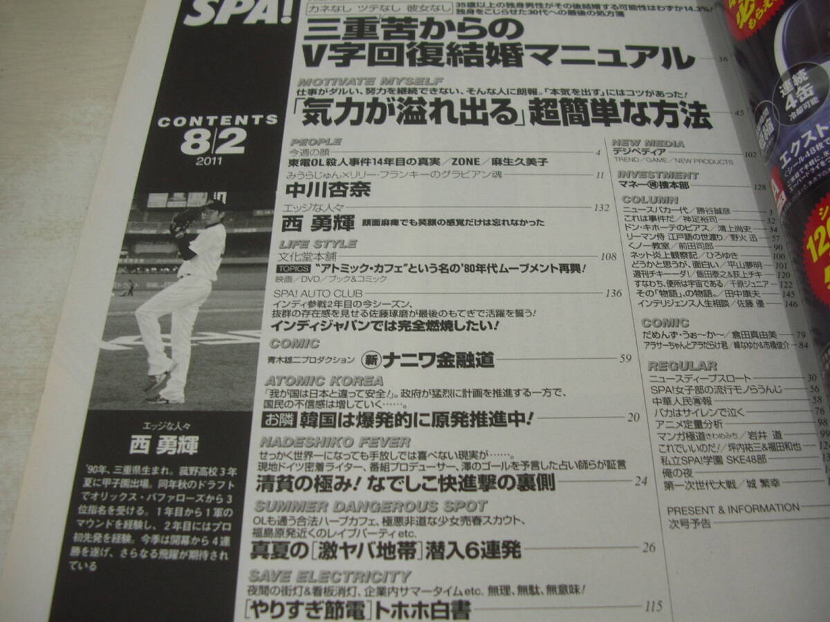 SPA! 週刊スパ 2011年08月02日発行 麻生久美子 表紙 ZONE 中川杏奈・グラビア魂 西勇輝 高柳明音 松井玲奈