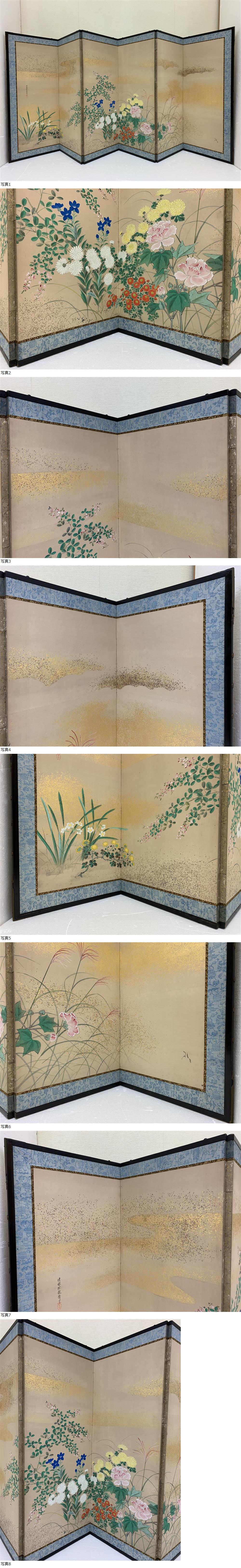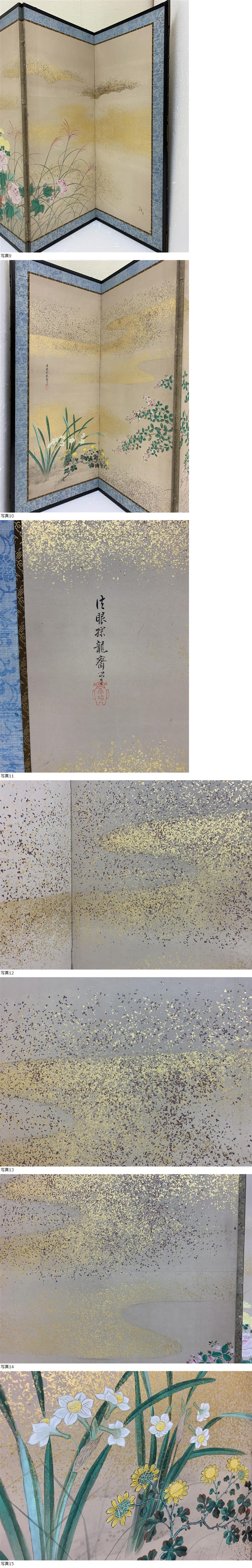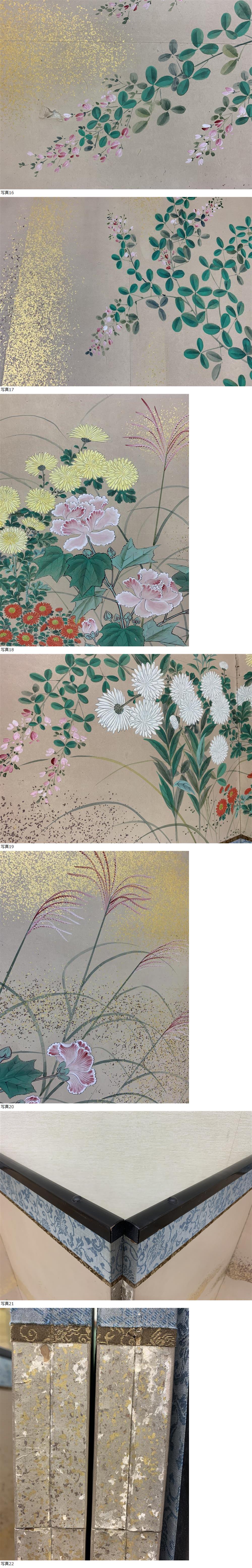 | 日本画屏風② 高さ107cm 四季草花図 秋草図 金砂子 探龍 |