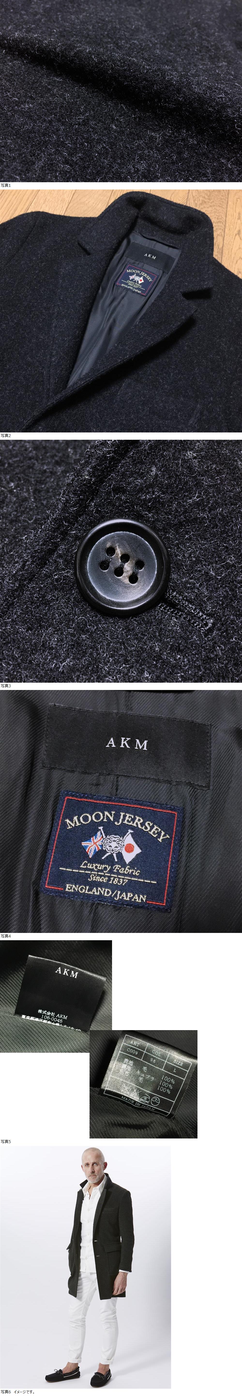 定価10万 美品 AKM エイケイエム × 英国 MOON ムーン WOOL JERSEY ウールジャージー 本切羽 チェスターフィールドコート メンズ L 日本製