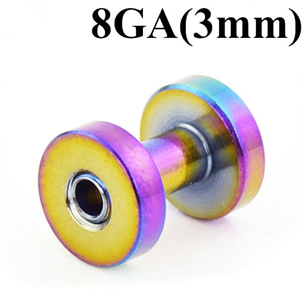 フレッシュトンネル レインボー 8G(3mm) サージカルステンレス316L カラーコーティング シンプル ボディーピアス イヤーロブ 8ゲージ
