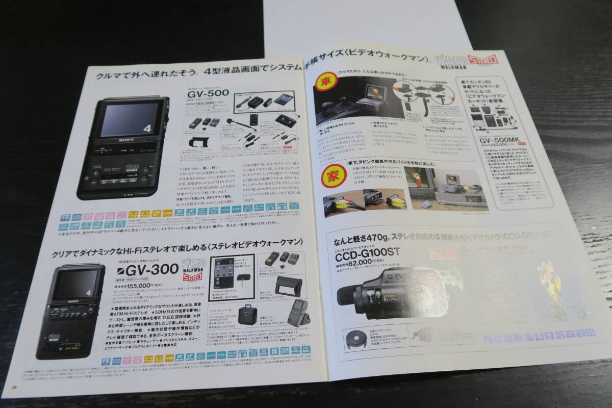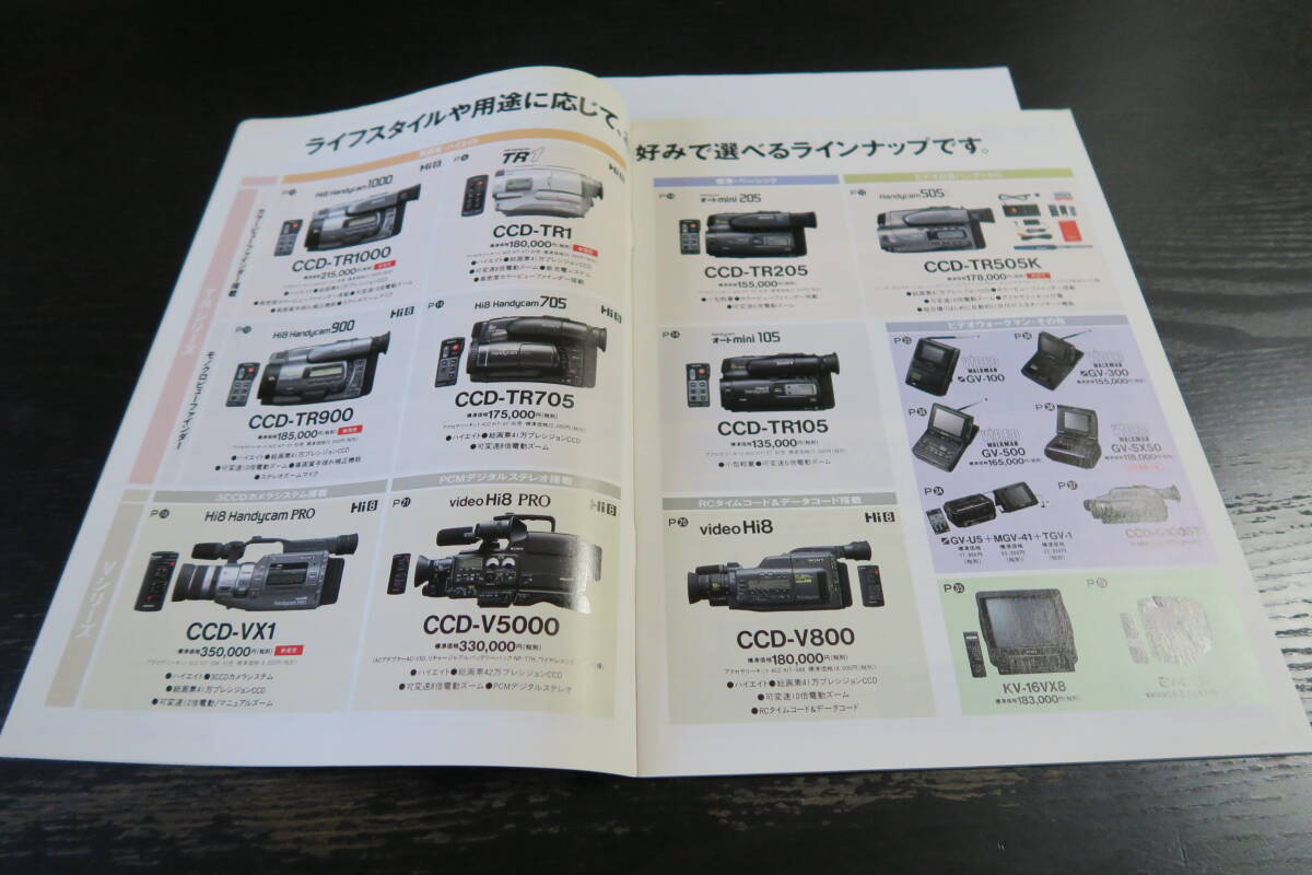 SONYソニー Video8(8ミリビデオカメラ、ビデオウォークマン総合カタログ)92年10月(TR1,TR1000,VX1,GV-SX50など)、A4サイズ39ページになります。状態は年月相応程度かと個人的には感じますが、写真にてご判断ご確認ください(裏表紙に販売店のスタンプがございます)。だいぶ古いものになりますので神経質な方はご遠慮ください、ノークレームノーリターンにてお願いいたします。