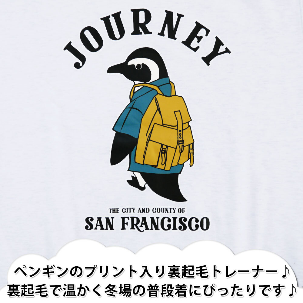 正規店仕入れの新品未使用品です 綿とポリエステル素材で、吸汗速乾に優れます ペンギンのプリント入り裏起毛トレーナー 裏起毛で温かく冬場の普段着にぴったりです |