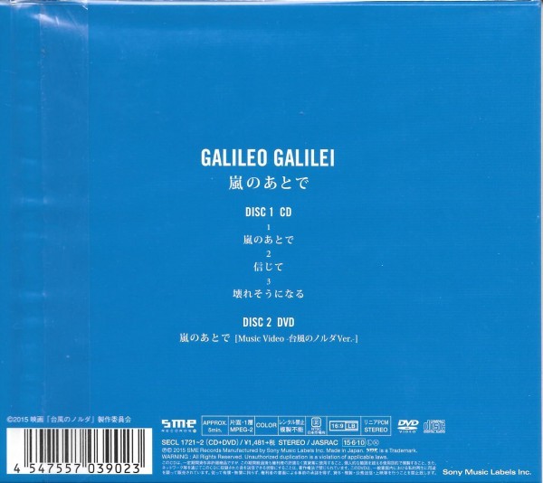 嵐のあとで(期間生産限定盤) Galileo Galilei (アーティスト名) 型番(品番)SECL-1721 発売日2015年06月10日 商品の説明 スタジオコロリド製作による2015年劇場映画『台風のノルダ』の主題歌「嵐のあとで」を収録したGalileo Galileiのシングル。本作が劇場映画監督デビューとなる新井陽次郎からの直々のオファーにより実現したコラボレーション作品。 曲目リスト 1嵐のあとで 2信じて 3壊れそうになる ディスク:2 1. 嵐のあとで [Music Video -台風のノルダVer.-] 状態 ・大切に保管していました。新品未開封です♪ ・外ビニールに多少、使用感があります。 ★★発送★★ ・ゆうメール170円です。(エアークッション2重巻き) ナビの返答は基本的には24時間以内に返答します。(土日祝は休業です、ご連絡は平日のPM5時までですのでそれ以降のご連絡は次の日か休み明けになりますのでご了承お願いします。) ・同梱の場合はこちらでは気が付かないときがありますので、最初に落札した方に一言、お願いします。 ☆★☆同包発送は可能です。他にもいろいろ出品しているのでよろしければ見ていってください♪その他何かありましたらお気軽にご質問ください。では、何卒よろしくお願いします。 |