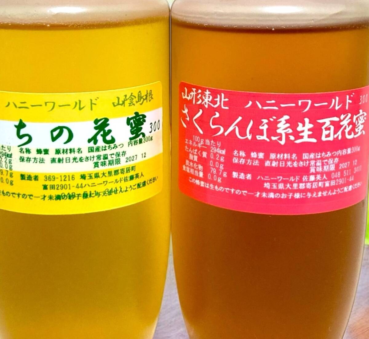 山陰島根の希少蜜 特選とちの花蜜300g 山形東北さくらんぼ系百花蜜の2本セットです。