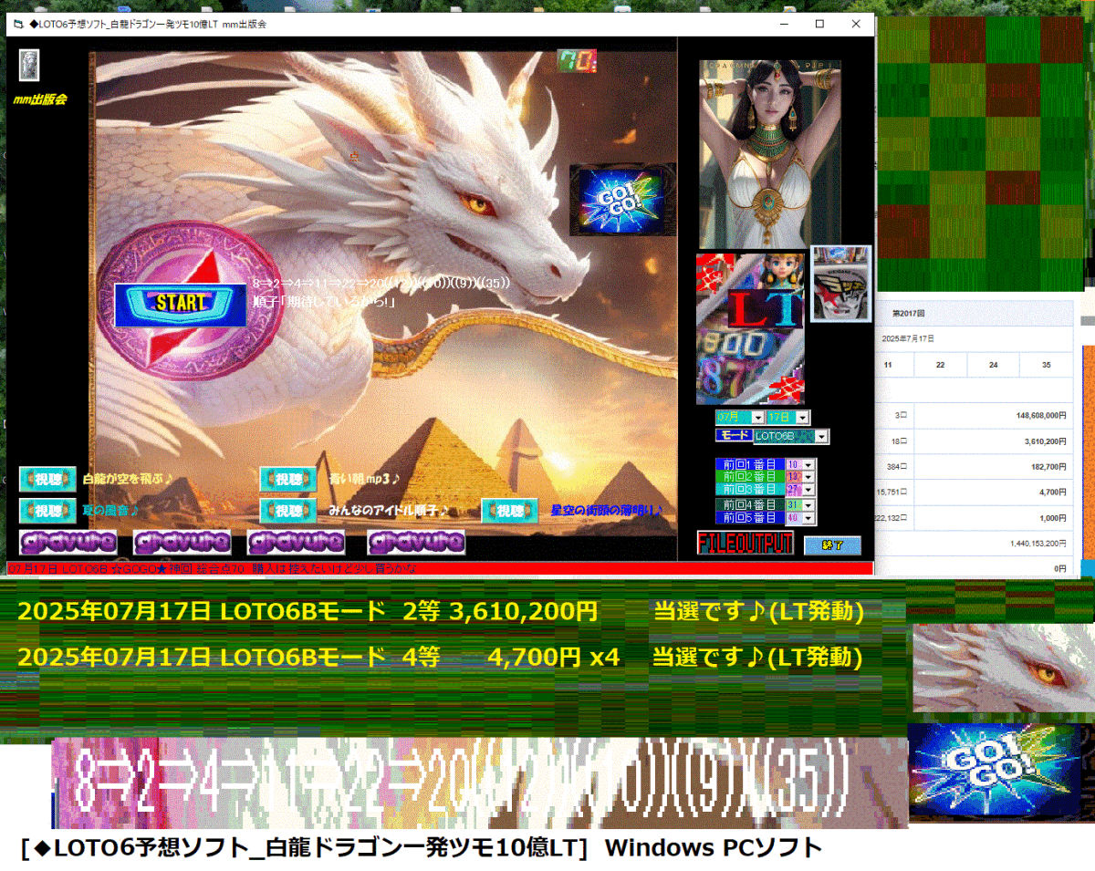 夏の新作 [◆LOTO6予想ソフト_白龍ドラゴン一発ツモ10億LT] をご案内申し上げます。