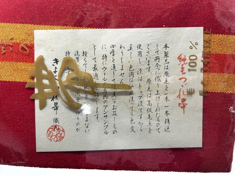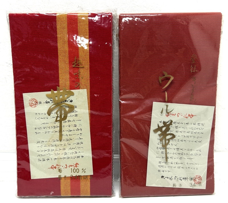 | 未使用 きよ水 純毛つづれ帯/ウール帯 2点セット 毛100% エンジ色 半幅帯/着物/和装/年代物/時代物 | |
