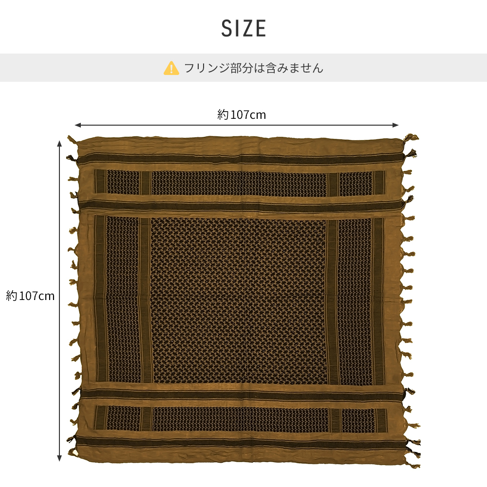 ![]() USミリタリーブランドの老舗ROTHCO社のシュマグ(別名:アフガンストール)です。緩く織られた薄手の生地でコットン100%。端の方はフリンジで糸処理されアクセントになってます。大判の生地ですので工夫によっては、マフラーから腰巻など多岐にわたります。全体的な織りの緩さや糸処理など非常に荒い作りですが、逆に洗練・計算さた物とは違う点が良いかもしれません。 本来の使用:砂漠地帯での砂塵や日光・熱風などを防ぐ為の物になり、緊急時の包帯・バッグ(風呂敷感覚)・タオルなど大判ならではの使い方となります。 ※非常に簡易に作られてますので、生地擦れ・シミ・ヨレ・シワ・縫製の悪さなどはあります。 MADE IN INDIA 【ネコポスご利用の際の注意点】 ・ご入金確認後の発送。(代金引換は不可) ・代金引換をご希望の場合は宅急便送料+代引手数料になります。 ・ご自宅のポスト投函配送ですので日時指定不可。 ・荷物の紛失・破損に対する引受限度額は3,000円となります。(ヤマト運輸による補償) ・万が一の不着破損等でも、ヤマト運輸との連絡のみで、当店は一切の補償クレームはお受けできません。 ・商品発送後にお荷物番号をお知らせしますので、クロネコヤマトにてお荷物追跡可能です。 ■Brand: ROTHCO ■商 品 名: SHEMAGH TACTICAL DESERT SCARF ■カラー: コヨーテ/ブラック ■素材: コットン100% ■サイズ表(cm): 《本体》幅約107cm×縦約107cm ※フリンジ部分は含みません。 (上記の数値はあくまで目安です。) ■仕入元: ROTHCO本社 ■状態: 新品未使用 |