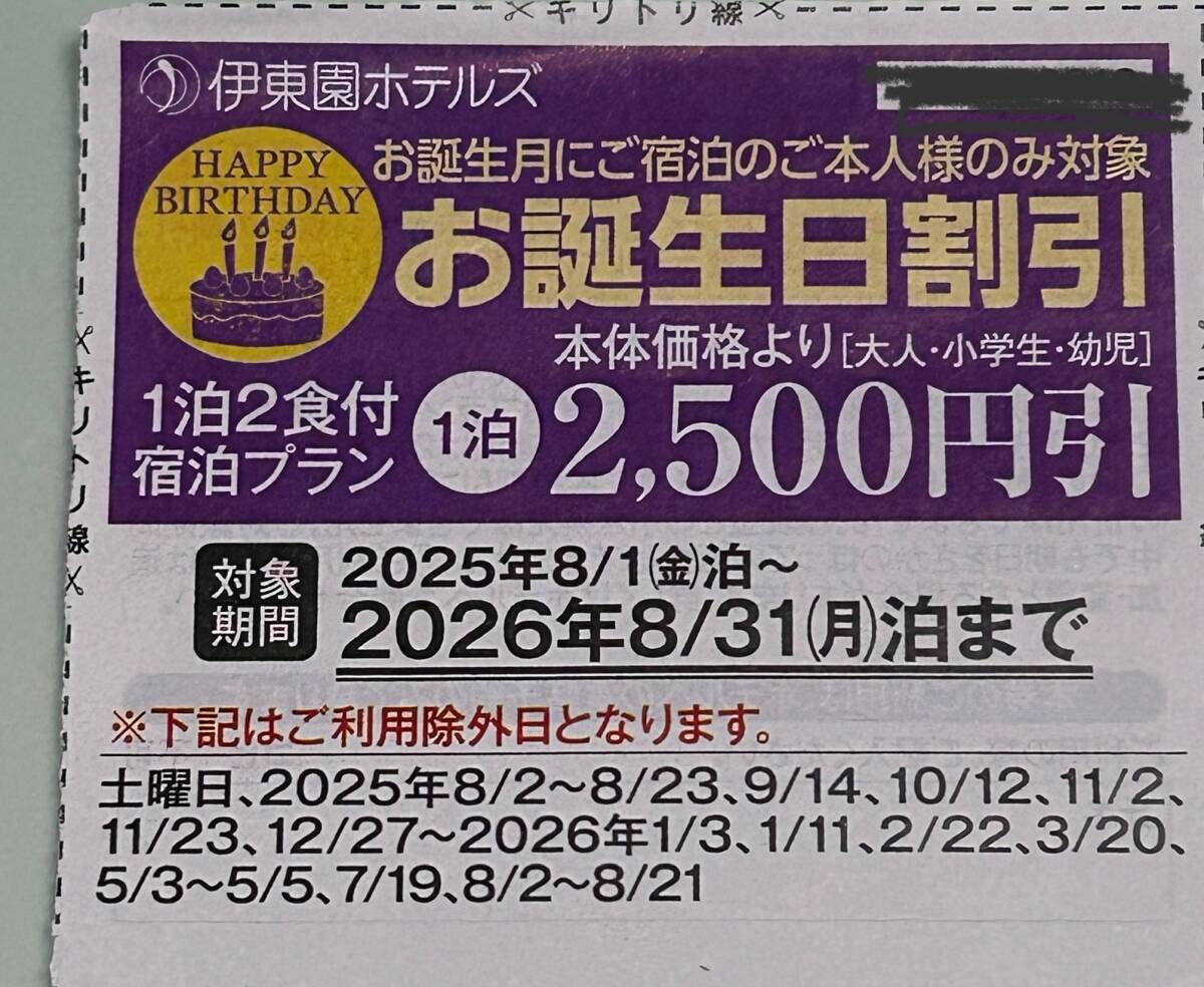伊東園ホテルズ お誕生日割引/はなの金曜日割引 クーポンです。