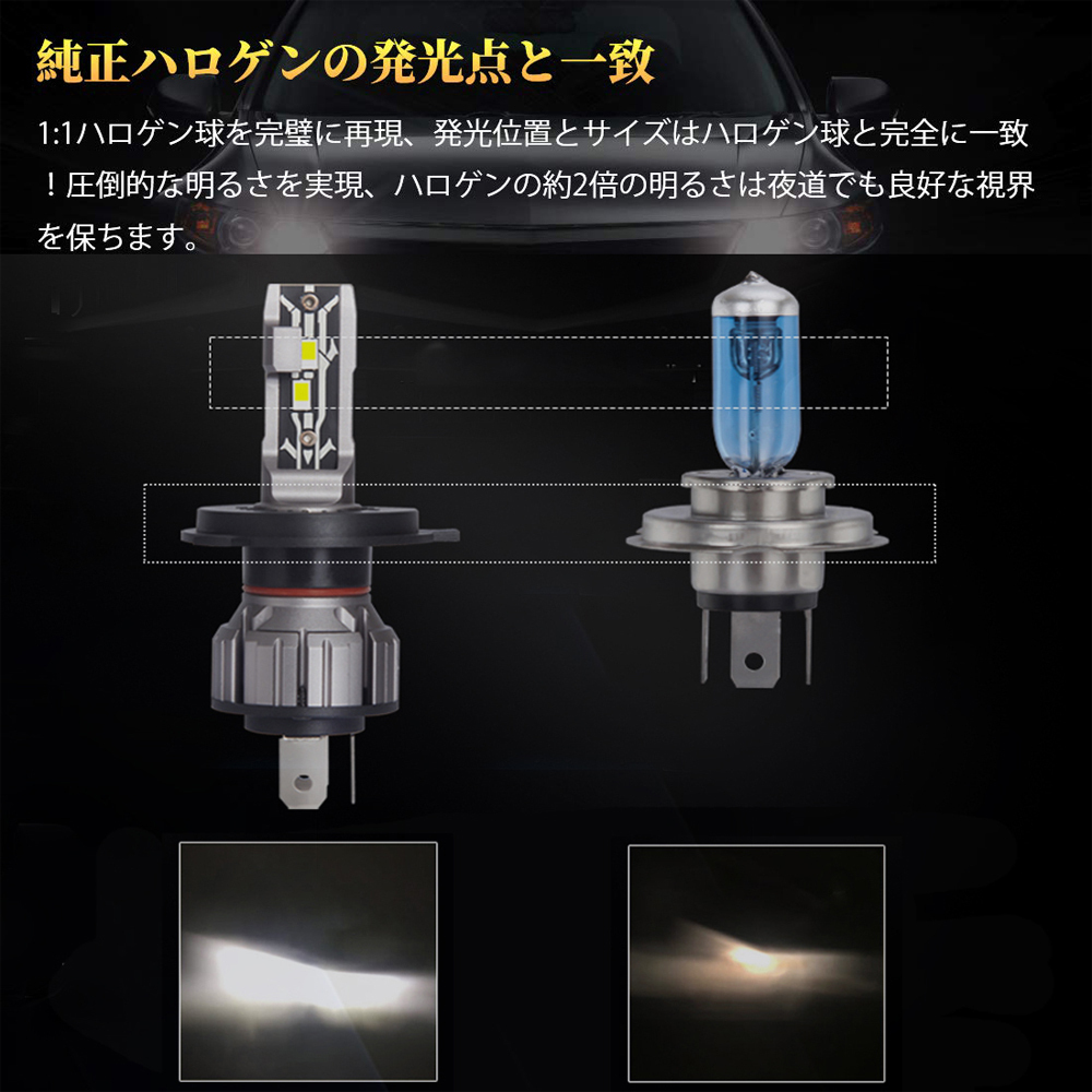 LEDヘッドライトは純正ハロゲン球に比べ明るく、光度と照射距離が約3倍!
