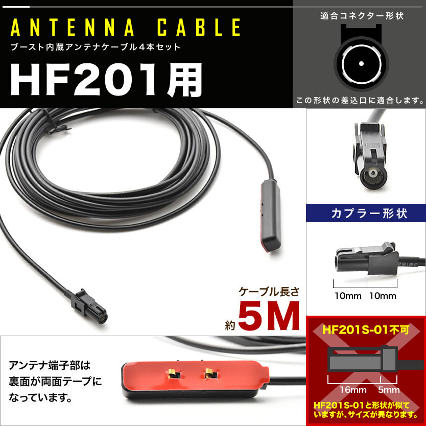 | カーナビ載せ換えや補修用に! 【確認事項】 ※アンテナケーブルはHF201用です。必ずコネクタ形状をご確認下さい ※フィルムを挟み込むタイプのアンテナ端子はご使用できません ※必ずアンテナ形状・通電箇所をご確認の上ご購入下さい ※通電箇所が合うアンテナであれば各メーカーにて使用可能です ※電波を通しにくいガラスやフィルム装着車は、受信感度が低下する場合があります |