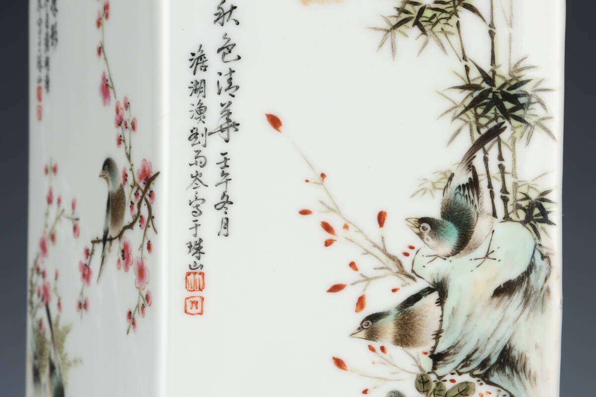 中国磁器 陶芸 磁器『珠山八友劉雨岑花鳥会菱瓶です』施釉陶 古代工芸品 陶芸 精美彫 置物 收藏品 | |||