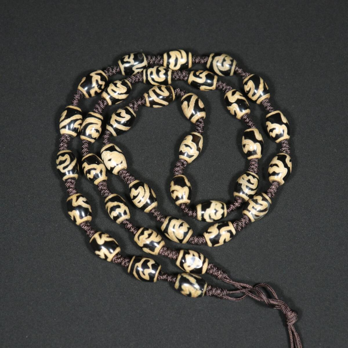 中国骨董品 和田玉『チベット老料老瑪瑙【蓮の花の天珠の鎖】ストラップです』 彫刻工芸品 伝世家珍 風水開運 精美彫 收藏品 置物 | ||||||
