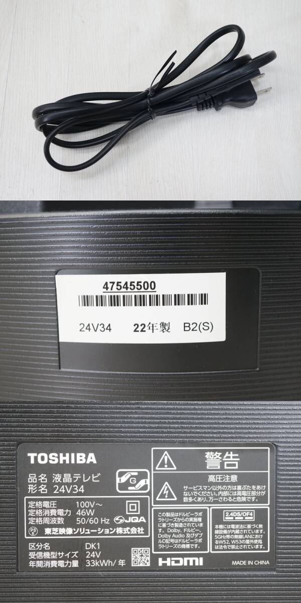 | 東ハ:【東芝】REGZA レグザ ハイビジョン 液晶テレビ 24V型 24V34 2022年 リモコン付 YouTube対応 24インチ ★送料無料★ |